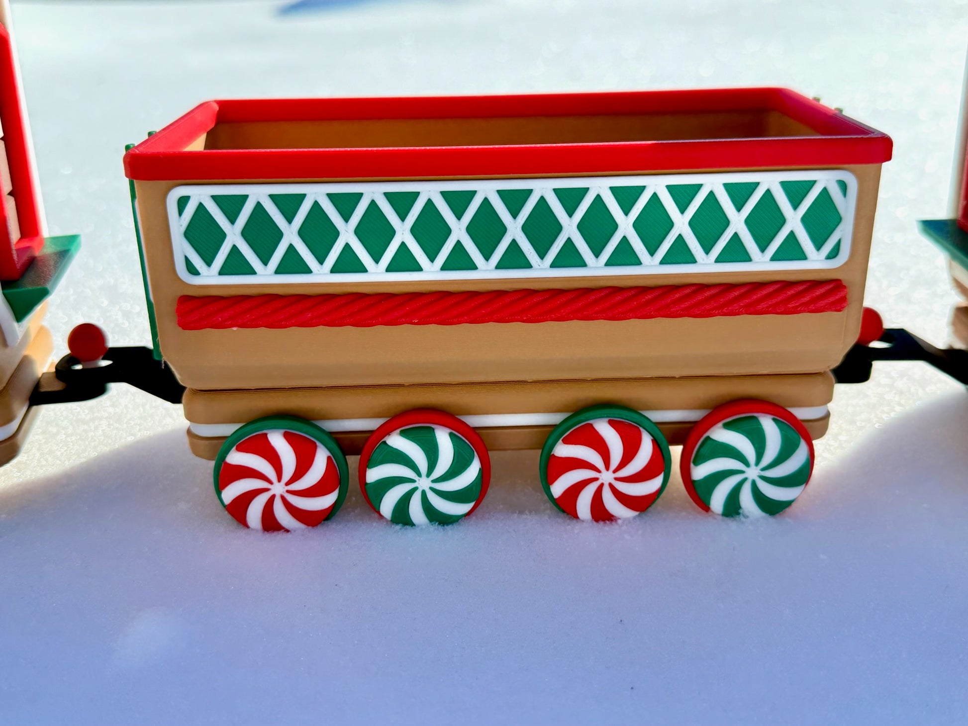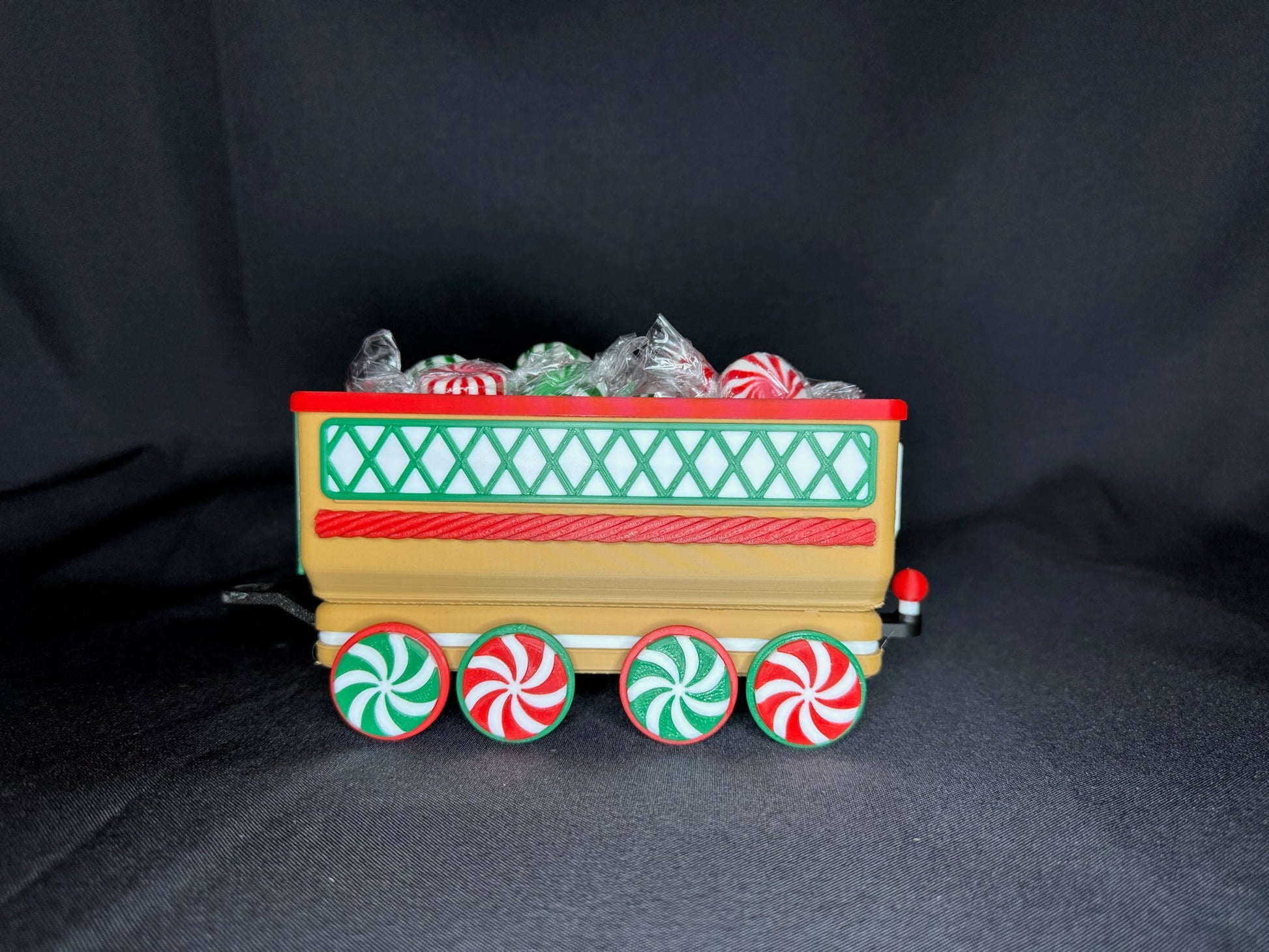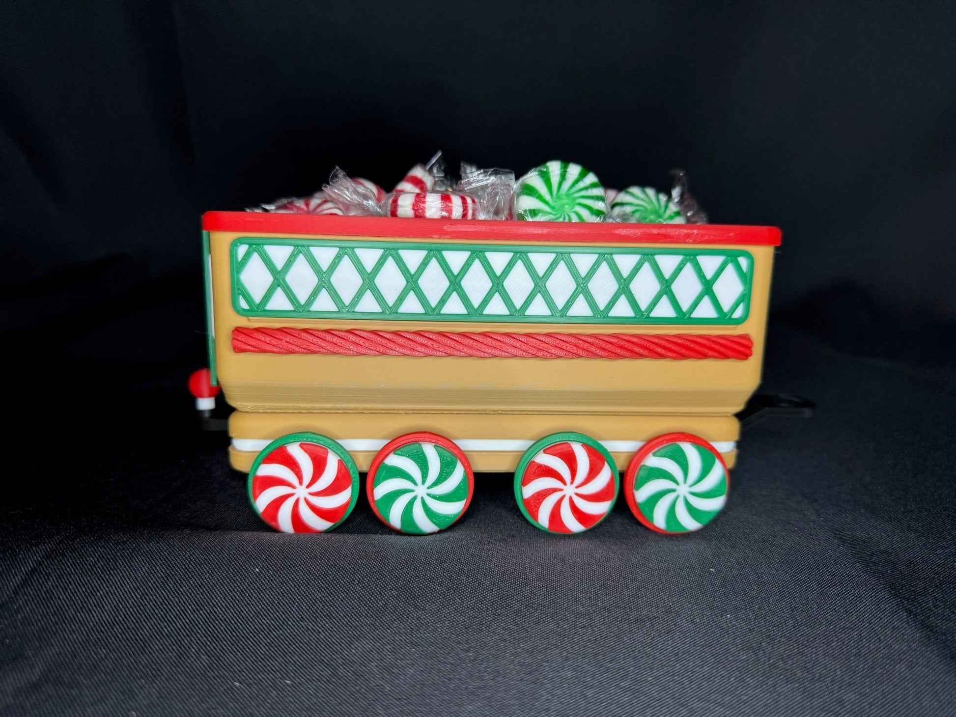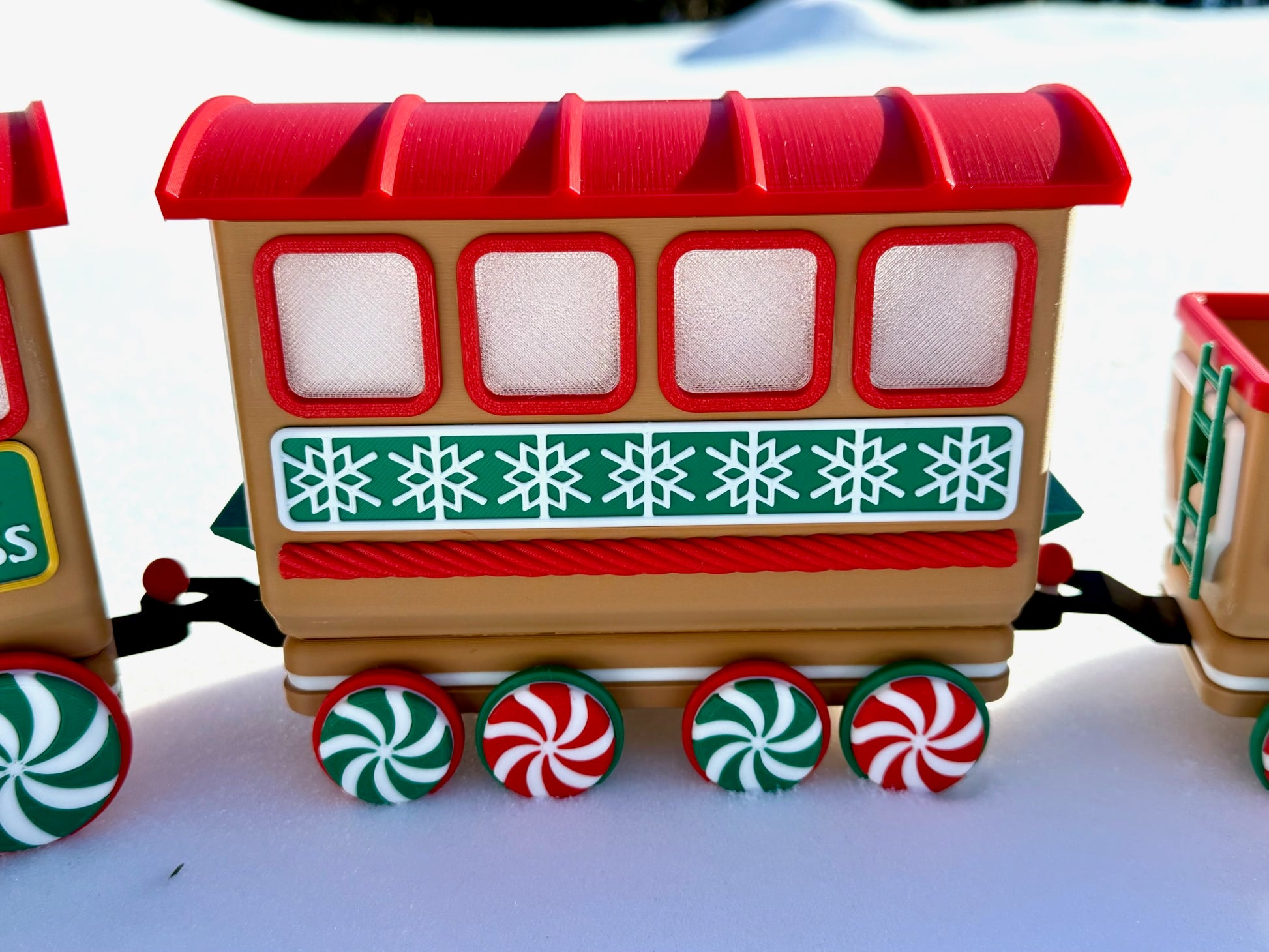 Chaque pièce est imprimée en 3D avec du plastique PLA de haute qualité et assemblée à la main avec une grande attention aux détails. Des roues en bonbons à la menthe aux flocons de neige gravés sur les côtés, chaque wagon apporte son propre charme festif. Le wagon ouvert est parfait pour y déposer des bonbons emballés, des mini décorations ou d’autres petits trésors de Noël. Pour une ambiance encore plus chaleureuse, la locomotive et les deux wagons arrière sont conçus pour accueillir des bougies chauffe-plat DEL—créant une douce lueur qui donne vie au train.