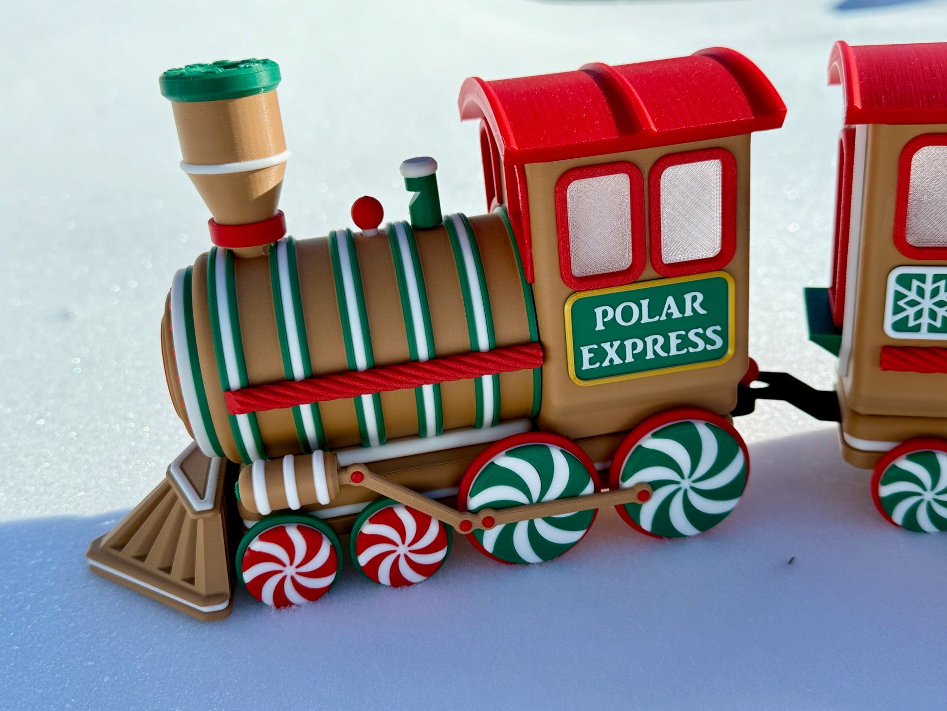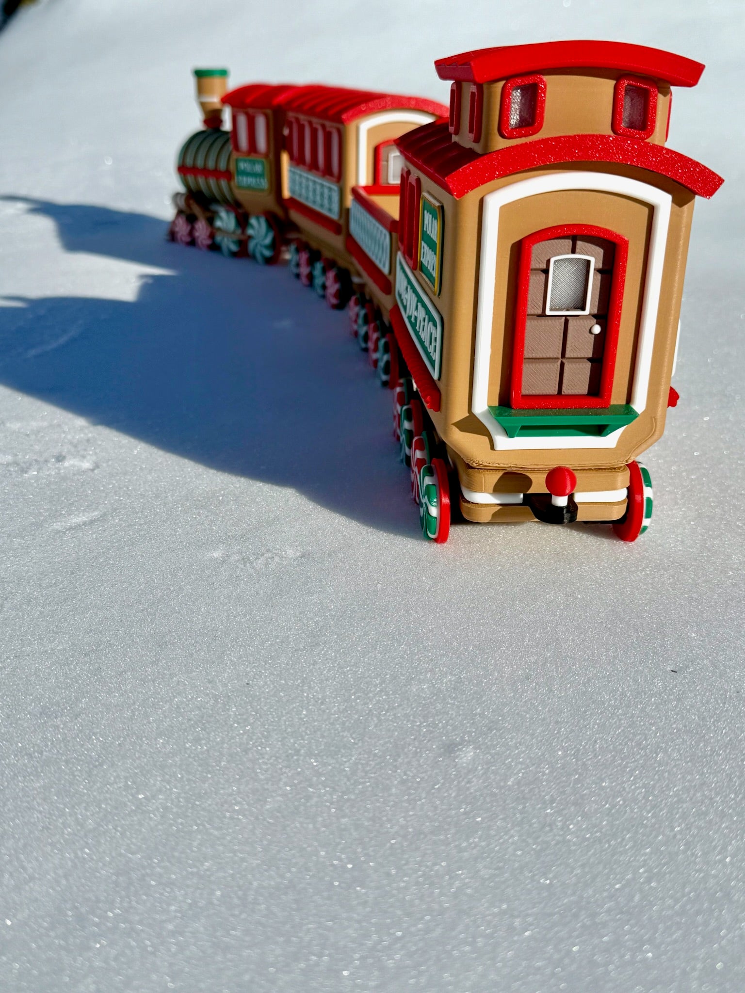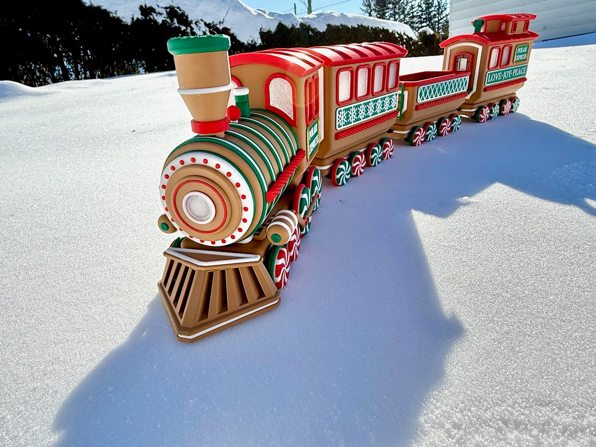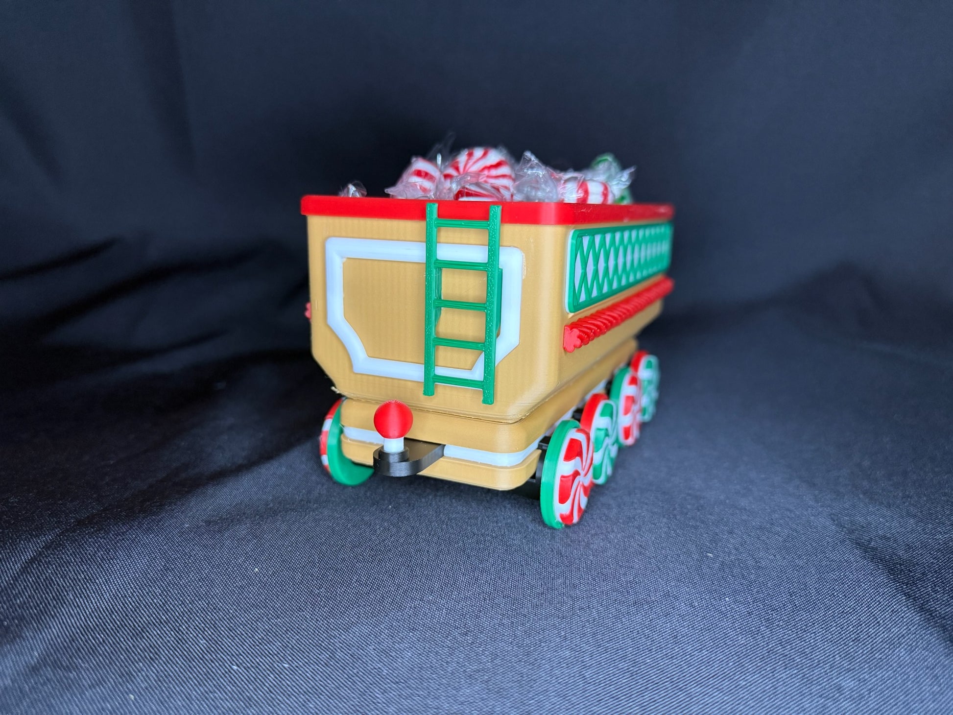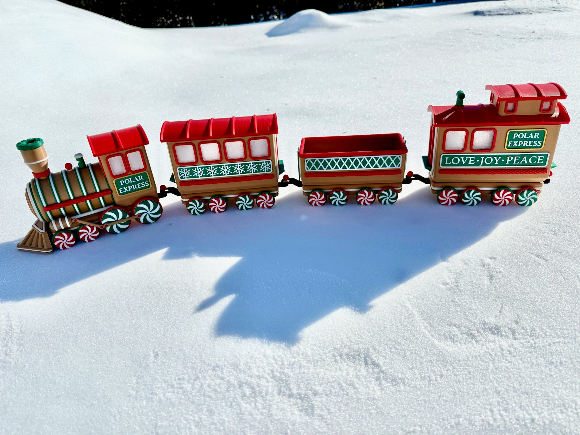 Chaque pièce est imprimée en 3D avec du plastique PLA de haute qualité et assemblée à la main avec une grande attention aux détails. Des roues en bonbons à la menthe aux flocons de neige gravés sur les côtés, chaque wagon apporte son propre charme festif. Le wagon ouvert est parfait pour y déposer des bonbons emballés, des mini décorations ou d’autres petits trésors de Noël. Pour une ambiance encore plus chaleureuse, la locomotive et les deux wagons arrière sont conçus pour accueillir des bougies chauffe-plat DEL—créant une douce lueur qui donne vie au train.