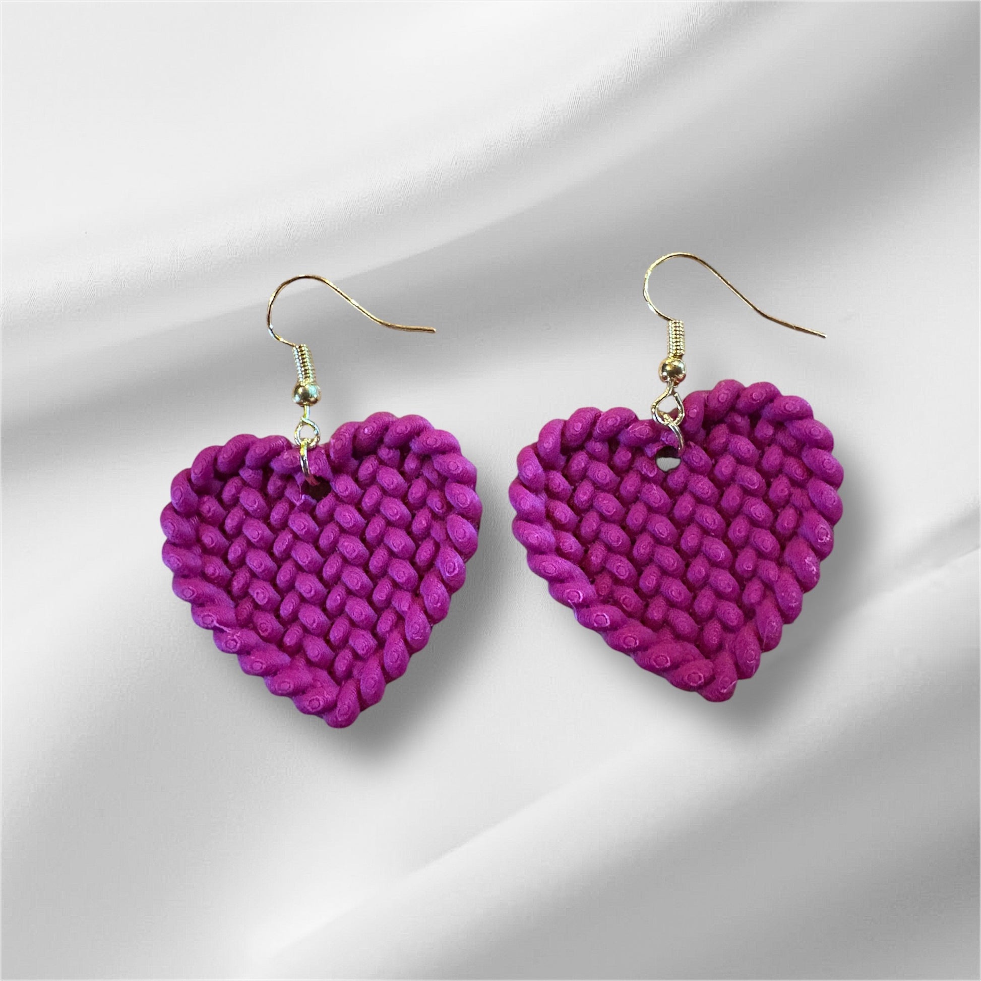 Designed, 3D‑printed, and hand‑finished by us, these deep‑magenta knitted‑texture heart earrings bring a warm, handcrafted vibe to any look. Made from feather‑light PLA, they add a splash of color without weighing you down.