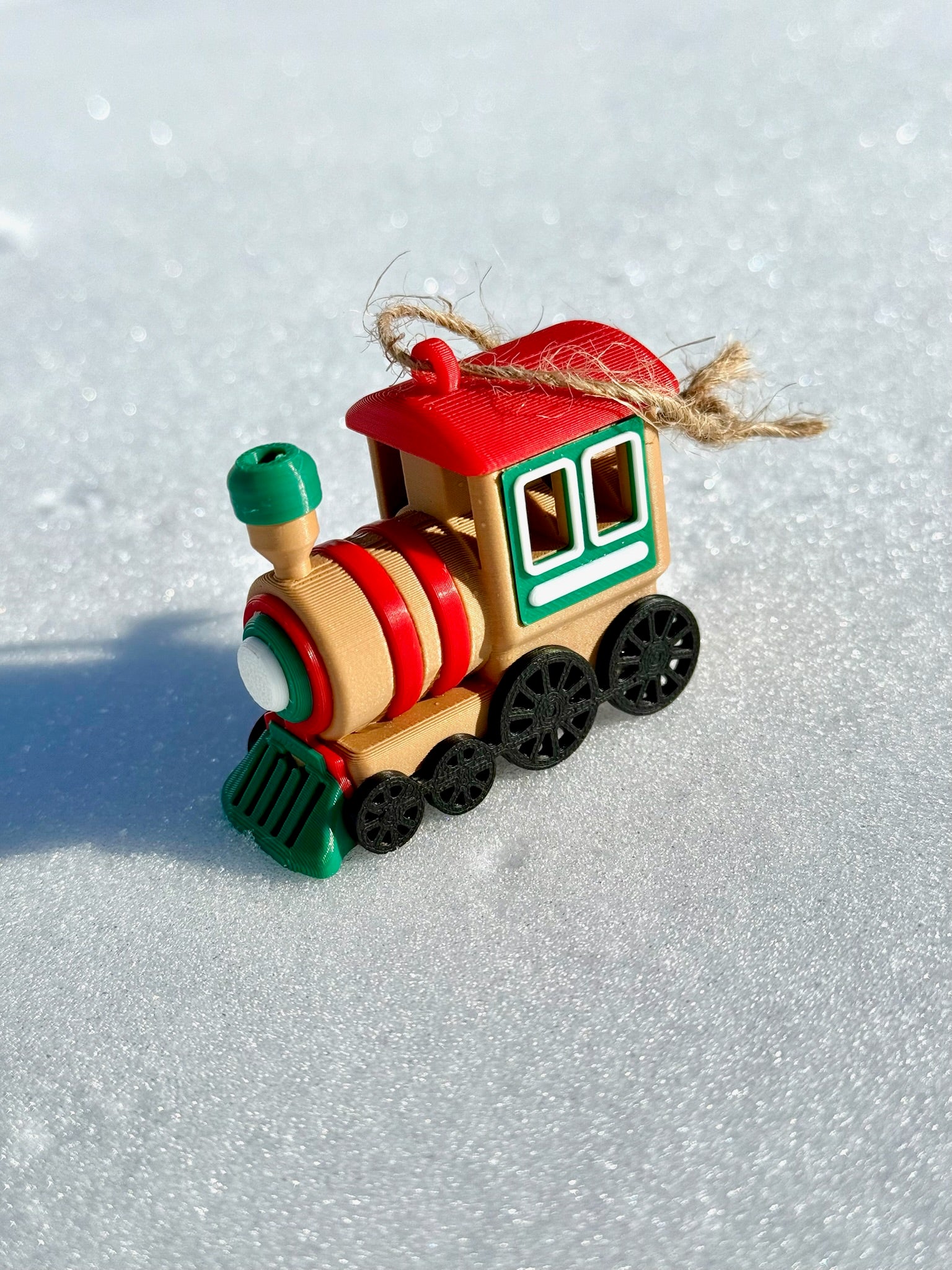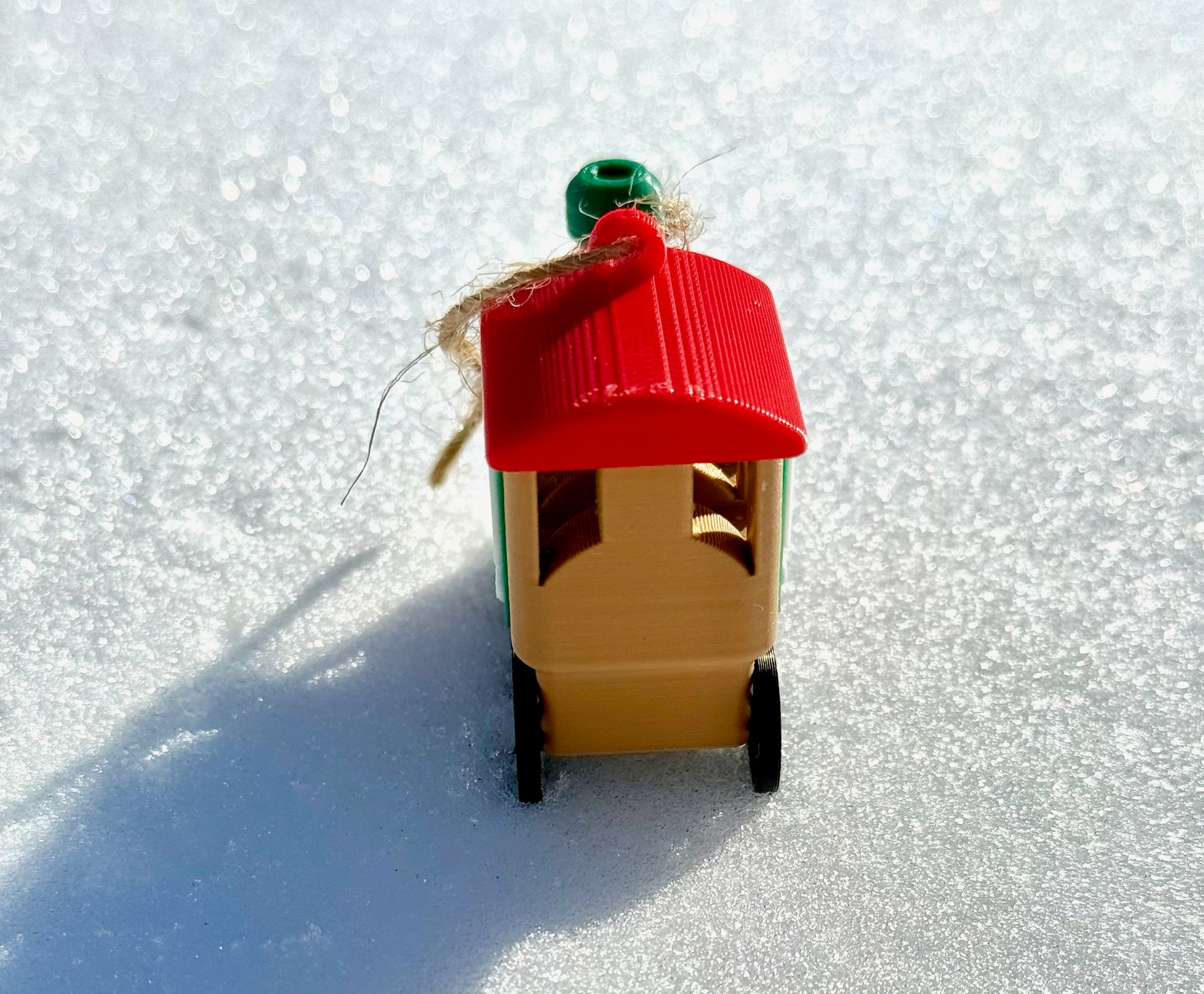 Add a touch of festive charm to your decor with this adorable Christmas train ornament! Featuring a vibrant red roof, green accents, and classic locomotive details, this 3D-printed ornament is perfect for brightening up your tree, mantel, or holiday display.