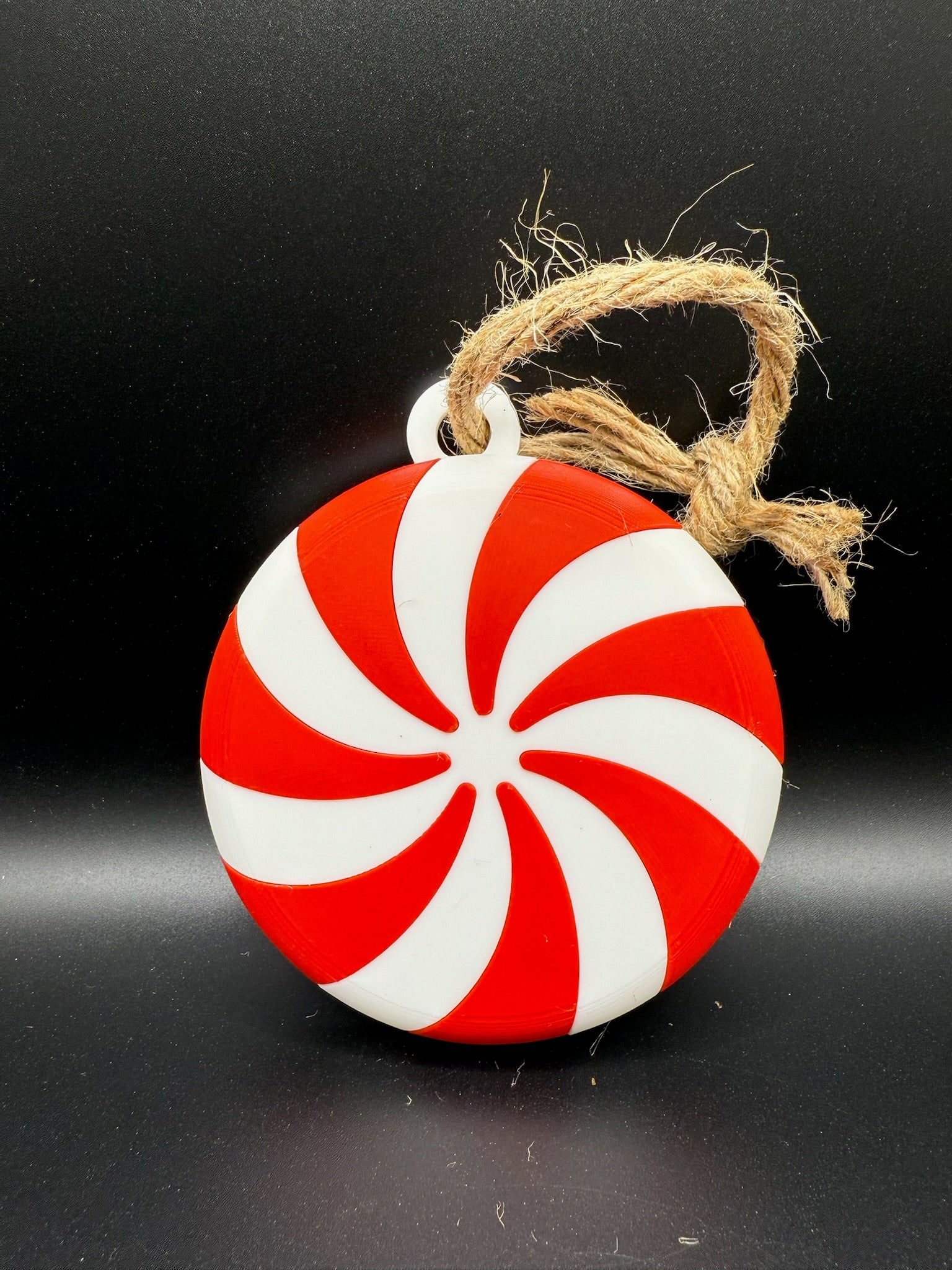 Add a touch of sweetness to your Christmas tree with this festive candy ornament! Featuring a red and white spiral design, this candy decoration measures 10.16 cm wide, 11.43 cm high, and 1.27 cm thick, bringing a delightful and gourmet touch to your holiday decor. Carefully 3D-printed, this ornament is both lightweight and durable, making it the perfect addition to your Christmas tree.