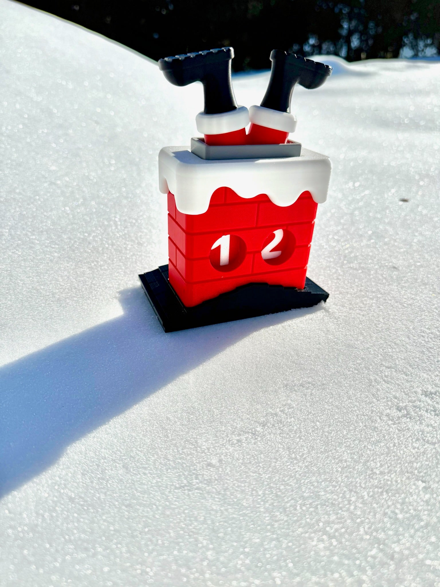 Make the countdown to Christmas even more magical with this fun and festive Santa’s Chimney decoration! Featuring Santa’s iconic boots sticking out of a snowy red chimney, this 3D-printed piece is both a playful centerpiece and a functional countdown.
