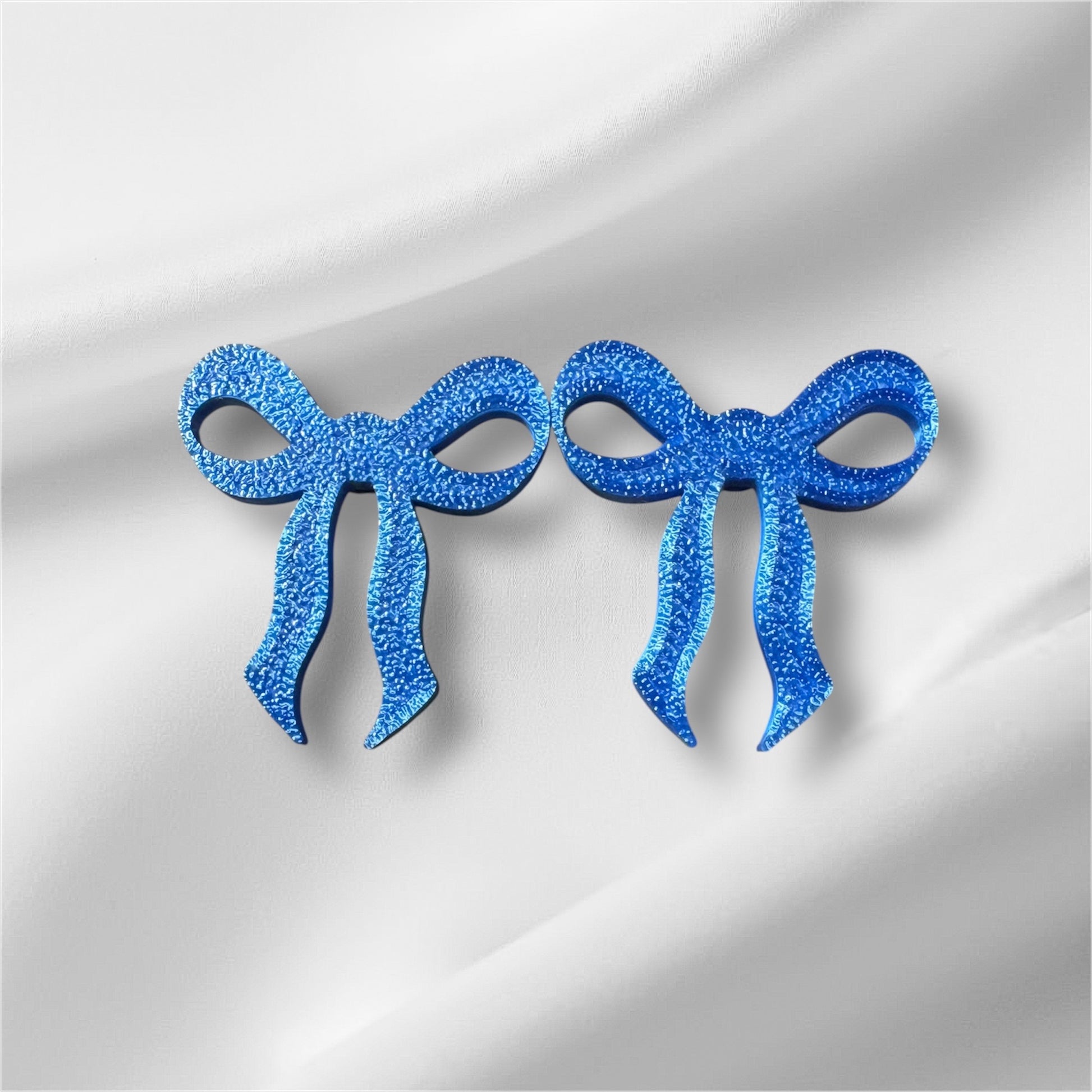 Designed, 3D‑printed, and hand‑finished by us, these glittery blue bow earrings add a playful pop to any look. The lightweight PLA bows sit on standard posts, with the ear stud set cleanly behind the bow so all you see from the front is pure sparkle.
