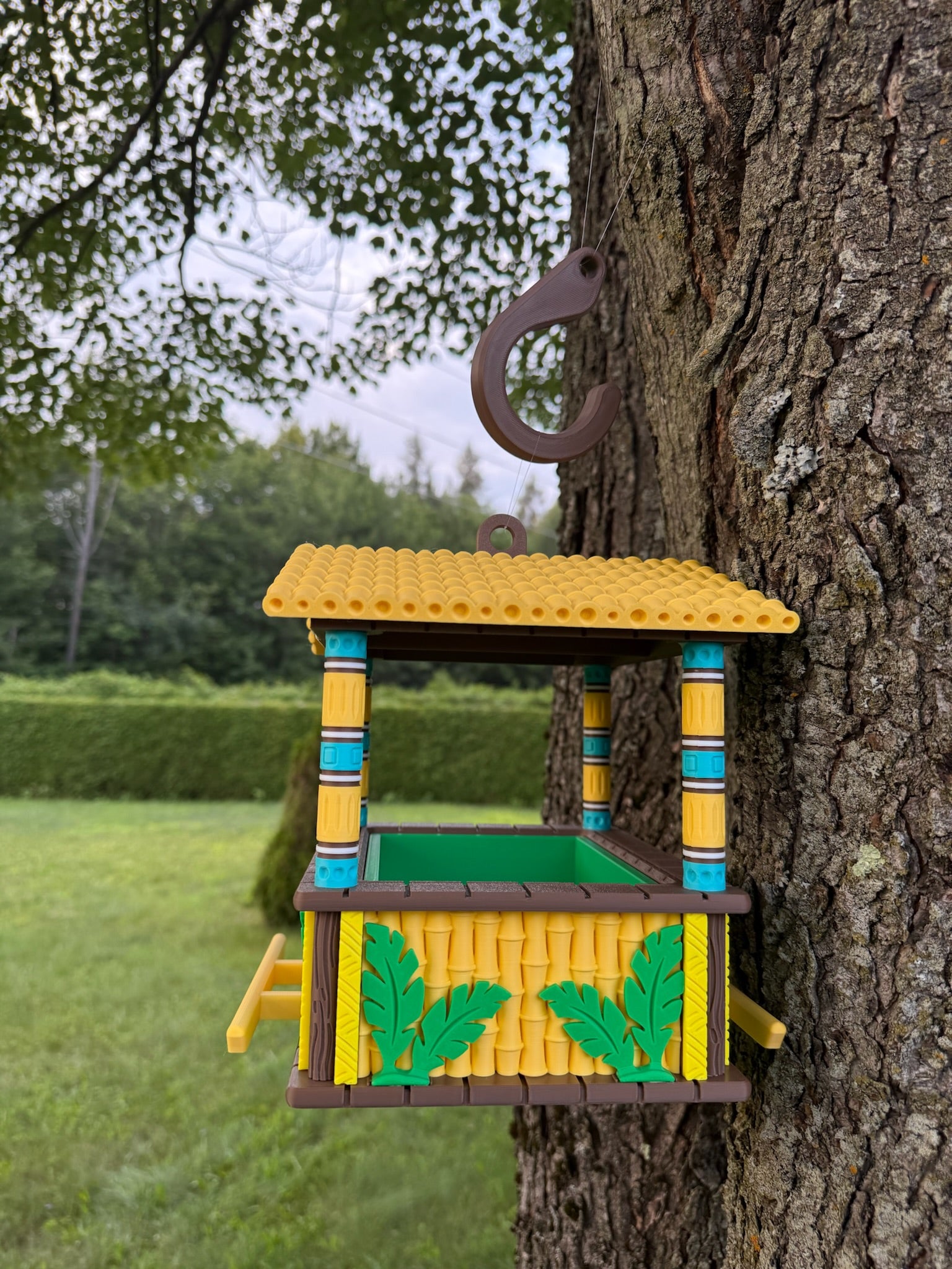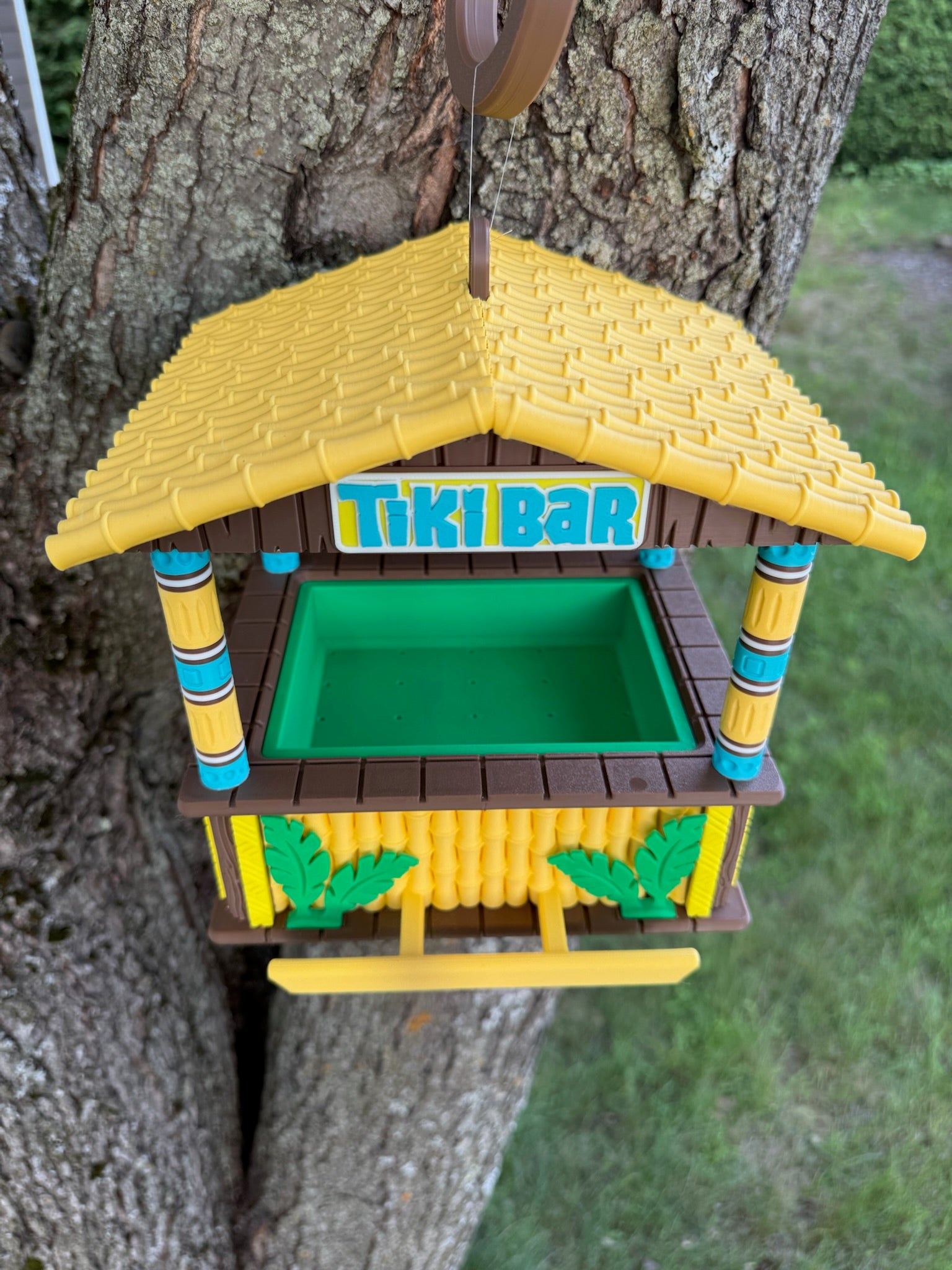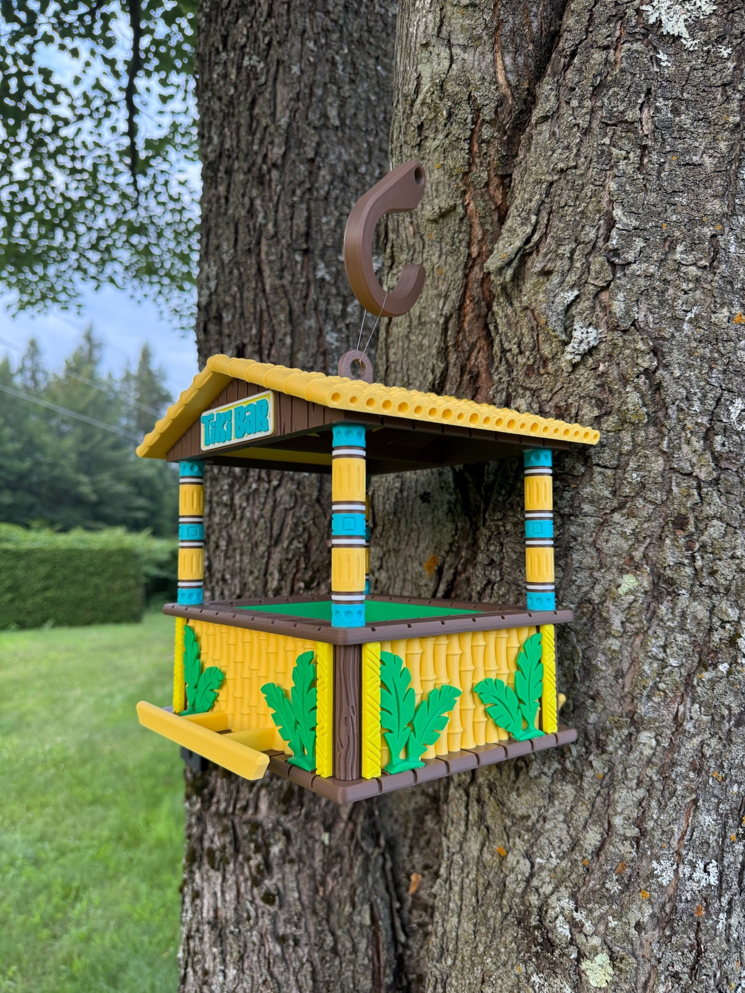 Bring playful island energy to your outdoor space. 3D‑printed and hand‑assembled by us, this feeder features a roomy seed tray and a protective roof so birds can snack in comfort.
